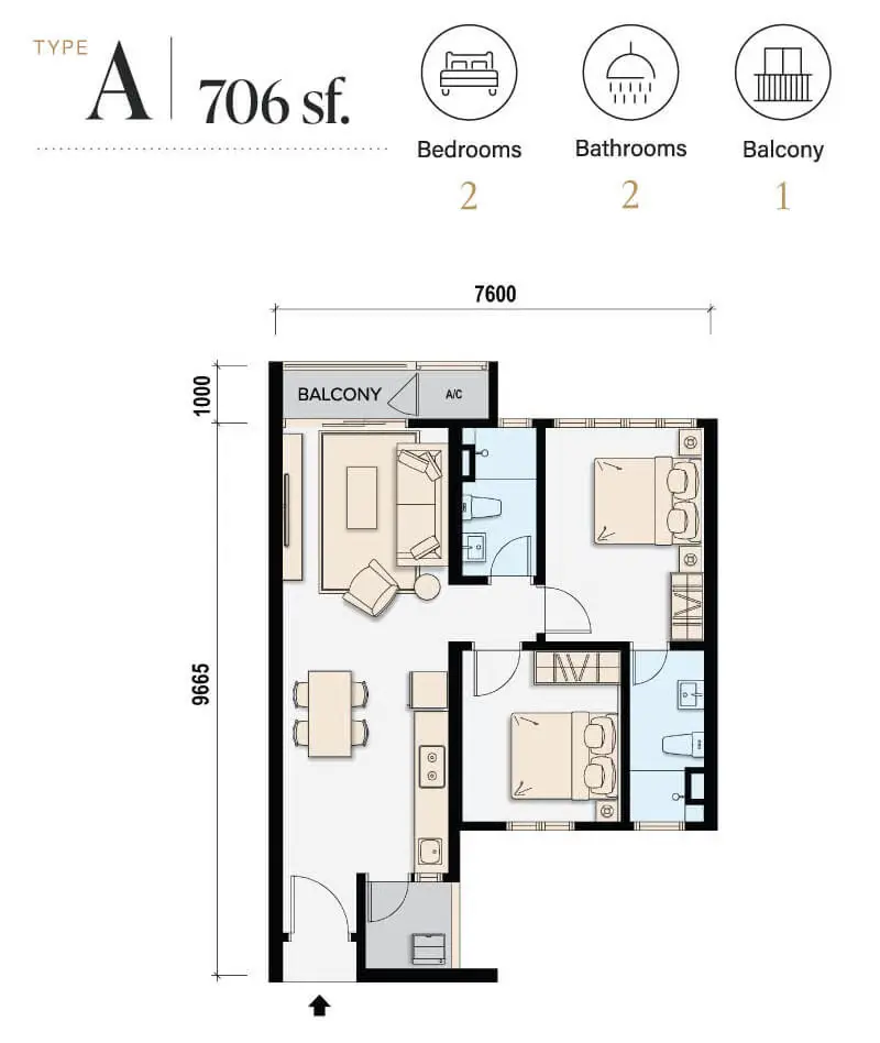 Offering 2–4 bedroom layouts (706–1,006 sq ft) and partially furnished units, this 3.7-acre project features premium facilities including a 50m lap pool, sky lounge, co-working spaces, gym, and EV charging stations.