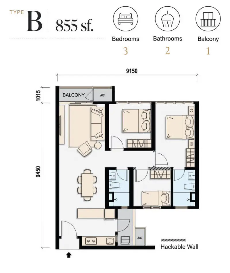M Aspira @ Taman Desa offers layouts from 706 – 1,006 sq ft with 2–4 bedrooms, designed for both functionality and flexibility. Selected internal walls are hackable, allowing you to easily reconfigure spaces at an affordable cost — whether to expand your living area, create a home office, or design a layout that truly reflects your lifestyle.